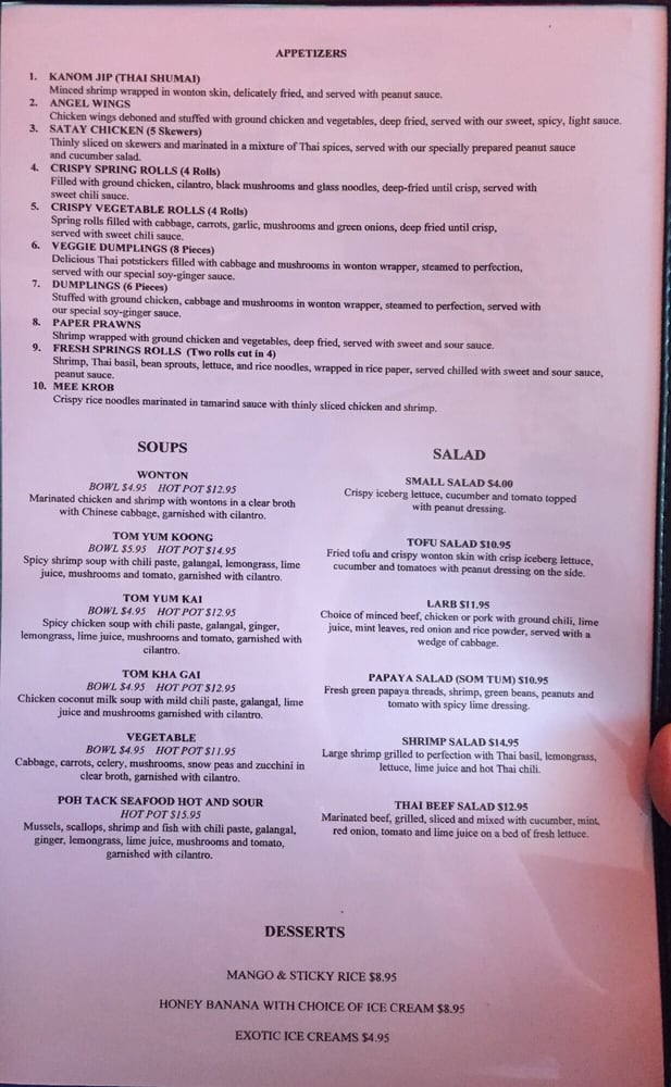Filled with shrimp, thai basil, bean sprout, lettuce, cucumber, and carrot, wrapped in rice paper and served chilled with peanut butter sauce and sweet chili sauce.
